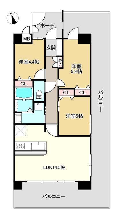 | 主要採光 | 南東向 | バルコニー | 南東向26.11㎡ |